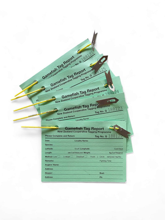 Blue Water Marine Research is selling tags at cost to support the NZ Gamefish Tagging Programme. Release and recapture information is valuable for the conservation and management of important gamefish species in the Southwest Pacific. These tags should only be used on kingfish, tuna, billfish and shark species.